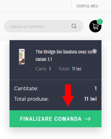 Dupa ce ați adaugat toate produsele în cos, deschideți fereastra de checkout din partea dreapta sus a site-ului. Oricând se pot șterge produse apăsând buton "x" sau adauga noi produse la coșul de cumpărături. Când toate produsele sunt adăugate se apasă butonul "FINALIZARE COMANDĂ".